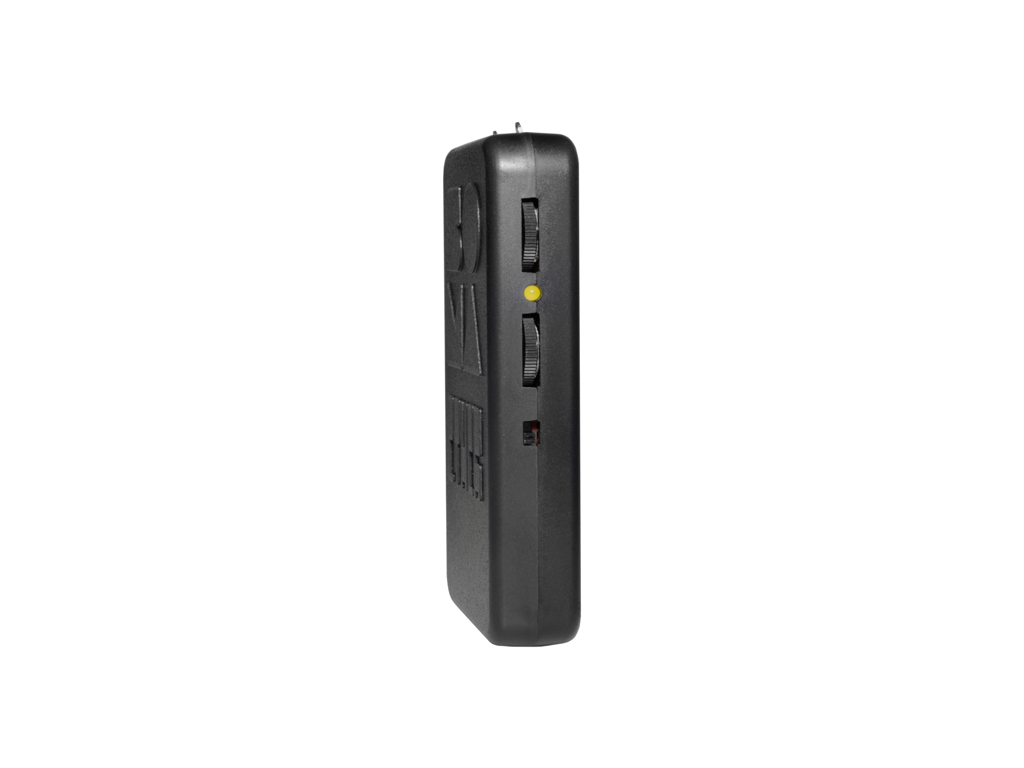 ETHER V2 has two wheels for sound control and the power switch. The upper wheel adjusts the amount of high-frequency amplification and regeneration. The lower wheel is the volume. By adjusting high-frequency gain you can focus ETHER on different dynamical levels of surround interferences getting the richest and interesting sound.