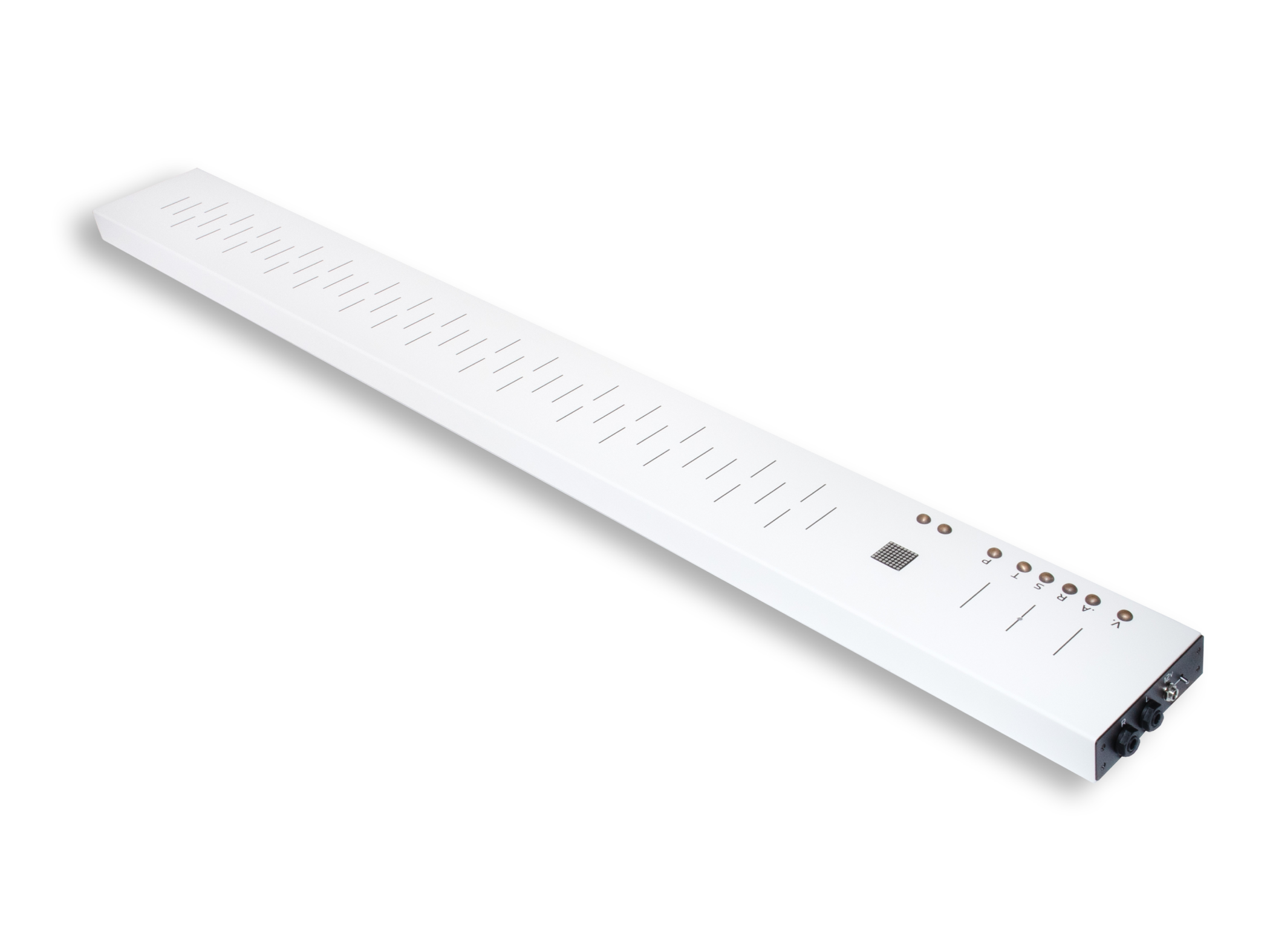 Since a magnet has two poles, FLUX not only detects the bows’ spatial coordinates, but also the bows’ angle. This means that flipping the right-hand bow on the Y-axis changes the octave, which allows a range of six continuous octaves without transposing the keyboard. With transposition you can get a range from sub-bass all the way to ultrasonic. The left-right tilting of the right-hand bow on the X-axis controls two independent modulation parameters.